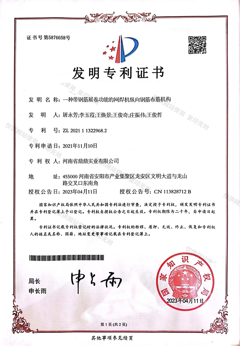 發明專利證書