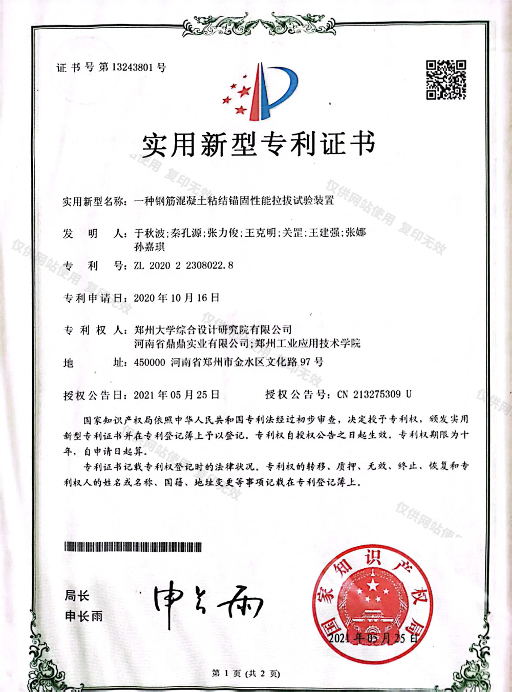 實用新型專利證書